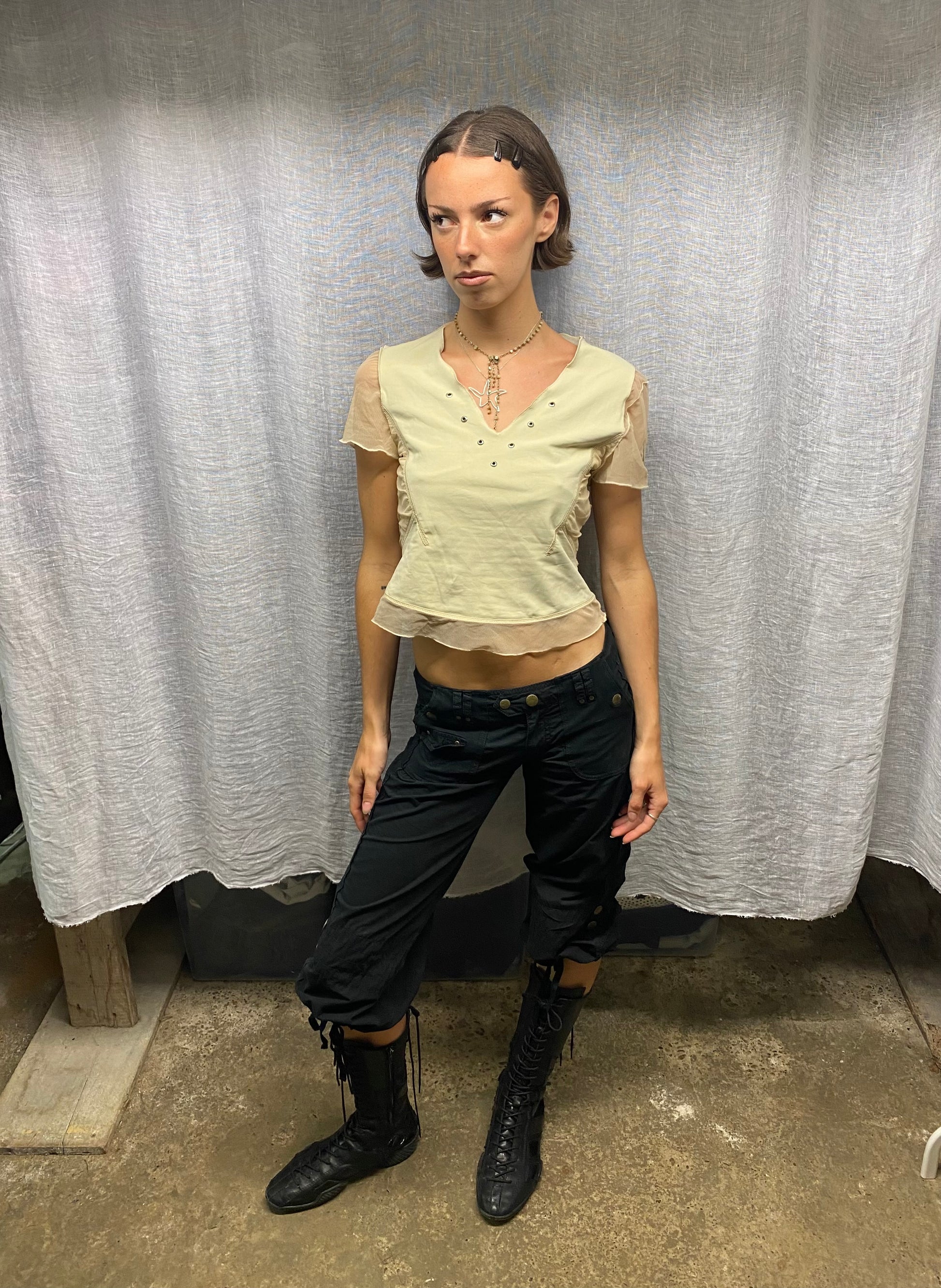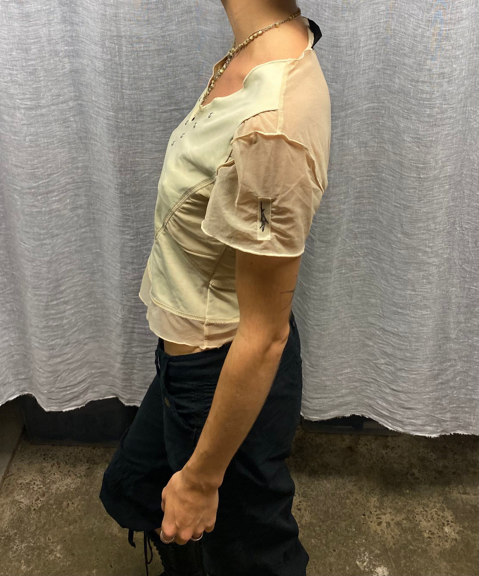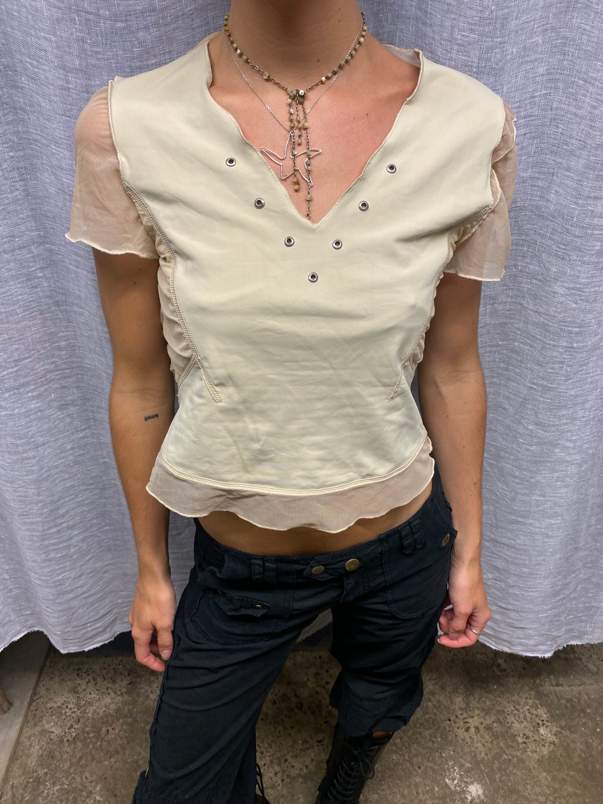 Beige mesh top